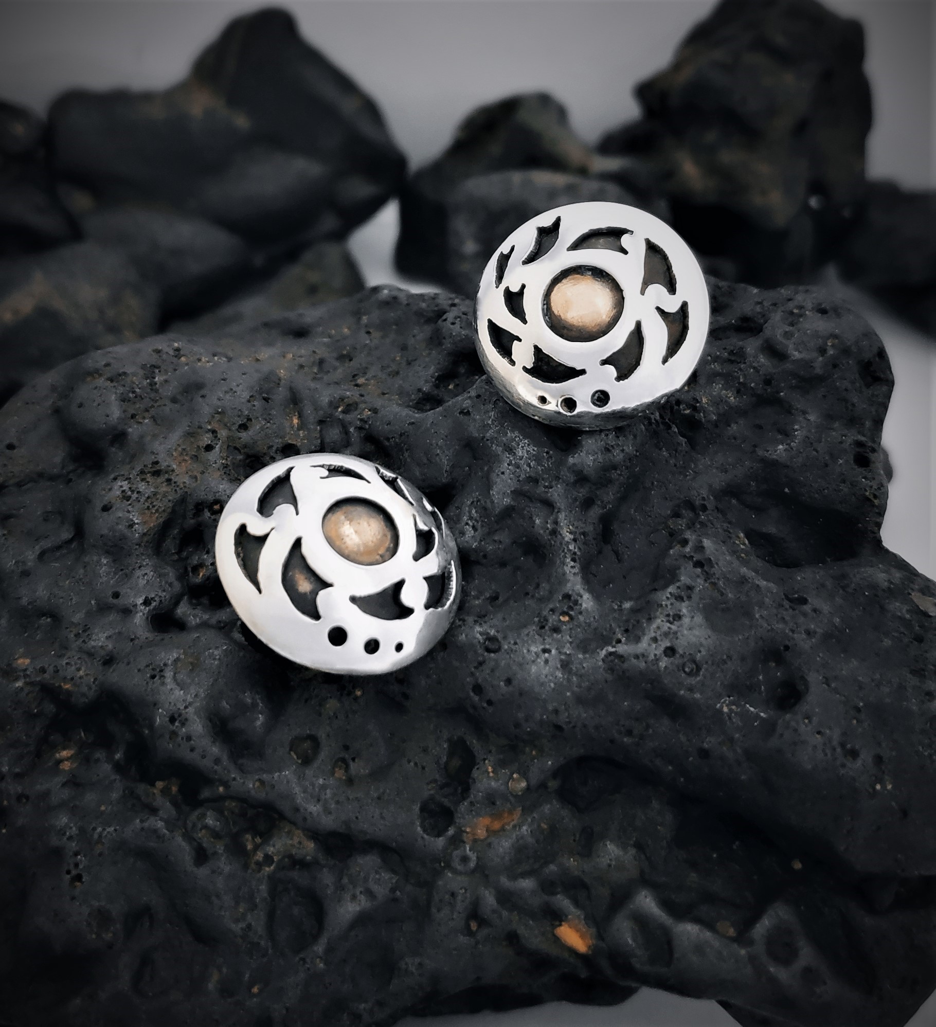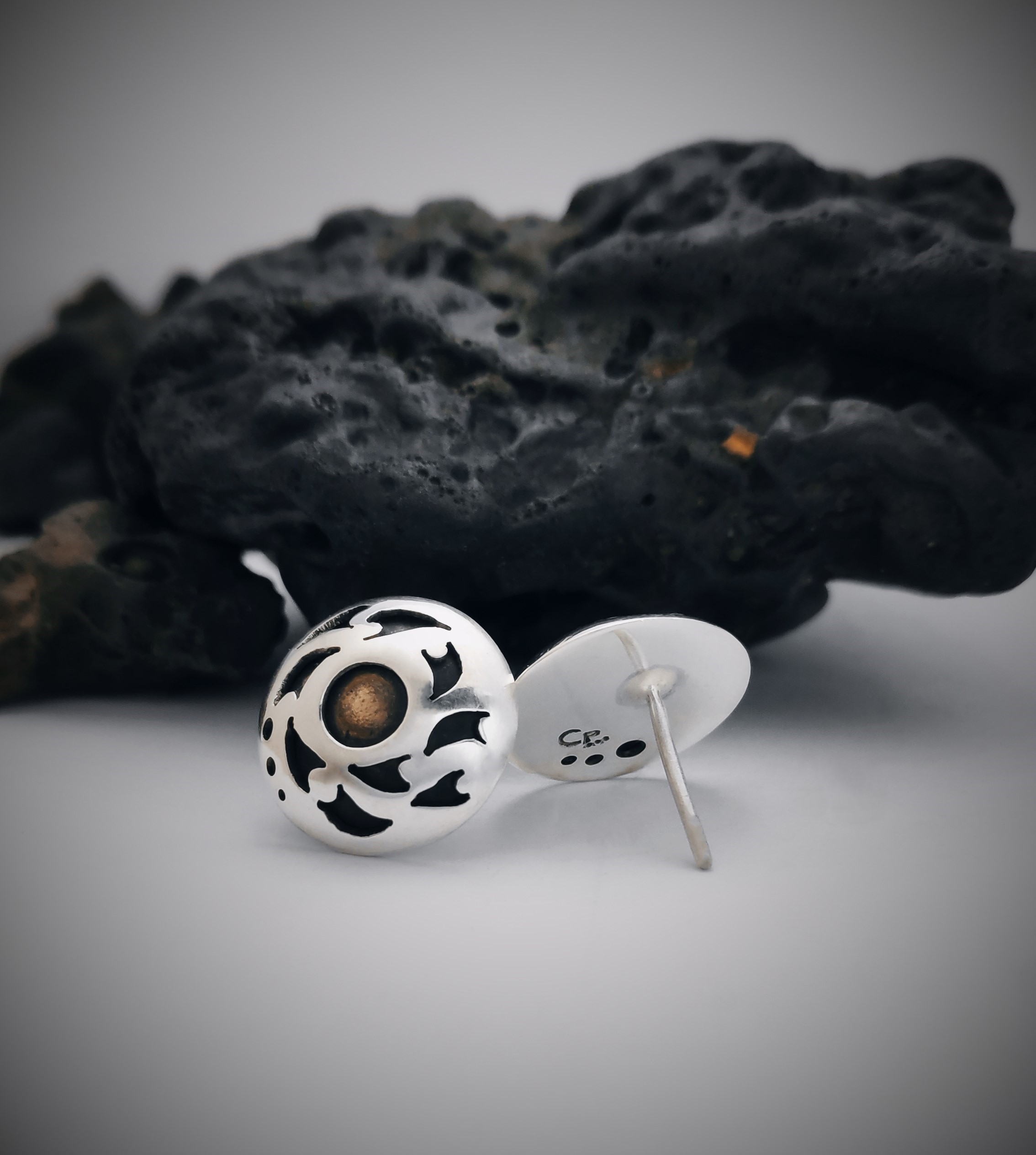 Hechos a mano en cobre y plata (950) estos pendientes nave están suspendidos en el cielo buscando un lóbulo donde aterrizar…